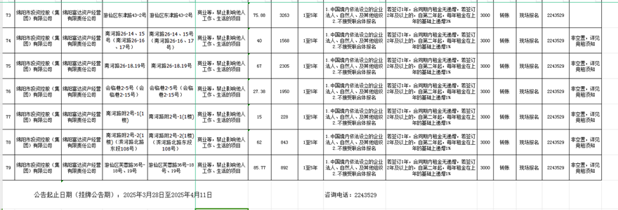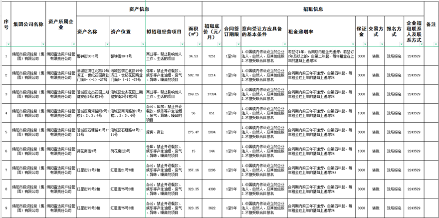 綿陽富達資產(chǎn)經(jīng)營有限責(zé)任公司出租公告