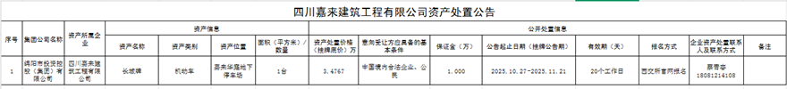 四川嘉來建筑工程有限公司資產(chǎn)處置公告