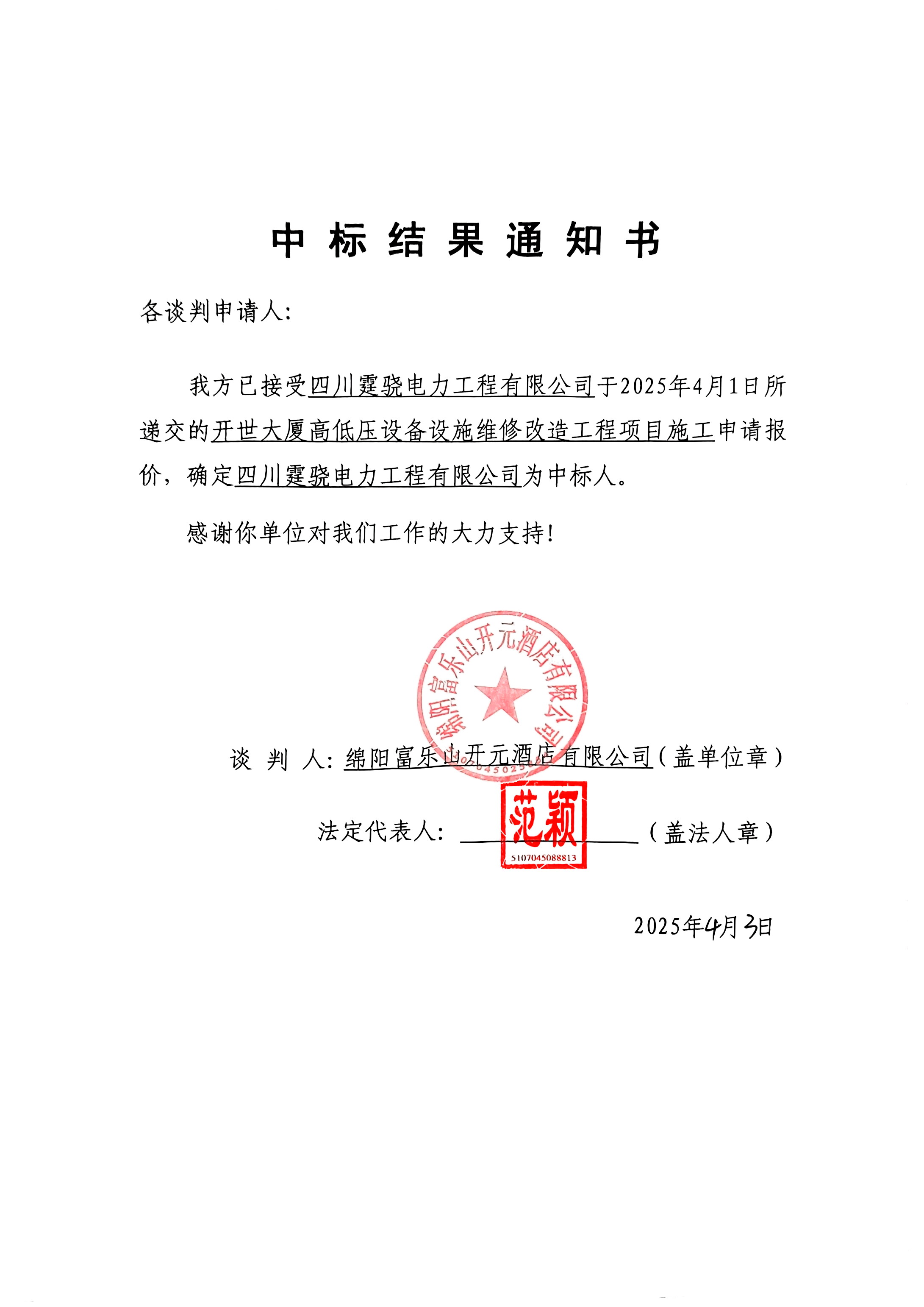 開世大廈高低壓設(shè)備設(shè)施維修改造工程項目施工競爭性談判結(jié)果公告